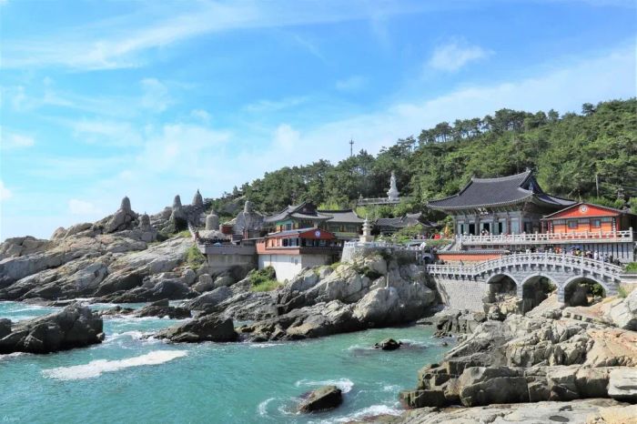 Haedong Yonggungsa Temple is a spiritual destination that captivates visitors with its serene beauty and unique seaside location in northeastern Busan. Built in 1376, this ancient temple, over 600 years old, is perched on a cliff overlooking the vast ocean.