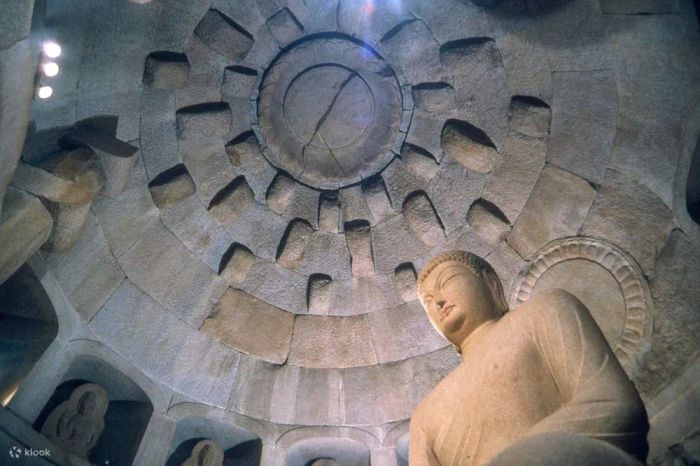 Visitors to Seokguram Grotto can marvel at the impressive granite architecture of the cave. Additionally, you can enjoy activities like hiking on Mount Tohamsan, taking in the stunning natural scenery, or participating in traditional Buddhist rituals.