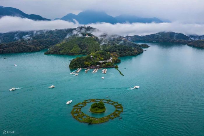 Sun Moon Lake covers an area of 7.73 square kilometers, making it the largest lake in Taiwan. The unique shape of the lake, which appears crescent-shaped when viewed from the west and sun-like from the east, is the origin of its distinctive name.