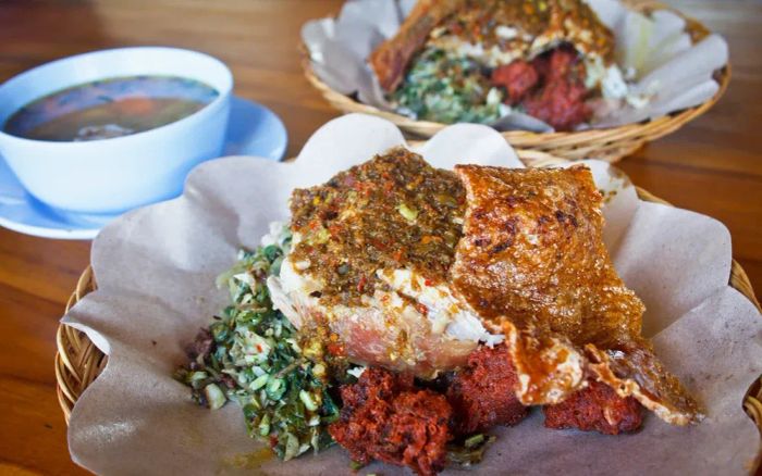 When enjoying Bebek Timbungan, you’ll experience the unique and delicious taste of incredibly tender duck meat, infused with rich and aromatic spices from the slow-cooking process. This is a must-try culinary experience when visiting Bali.