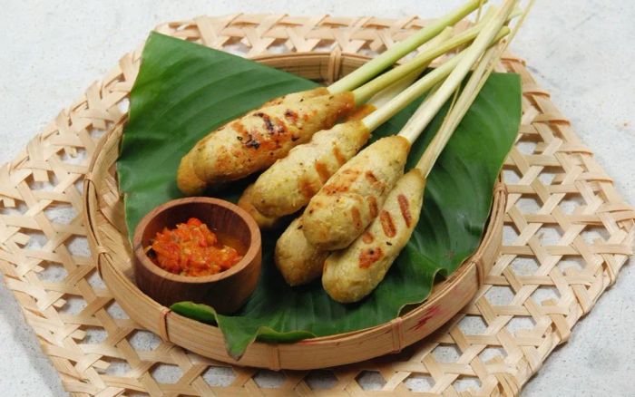 This dish features skewers made from tuna, seafood, or chicken, mixed with a blend of traditional Balinese spices.
