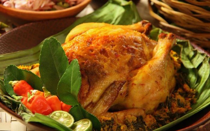 Originating from Gilimanuk, a port city on Bali's western coast, Ayam Betutu is a slow-cooked chicken dish where the meat is marinated with a blend of spices and simmered for hours. The spice mix typically includes turmeric, shallots, garlic, ginger, candle nut, coriander leaves, and fish sauce.
