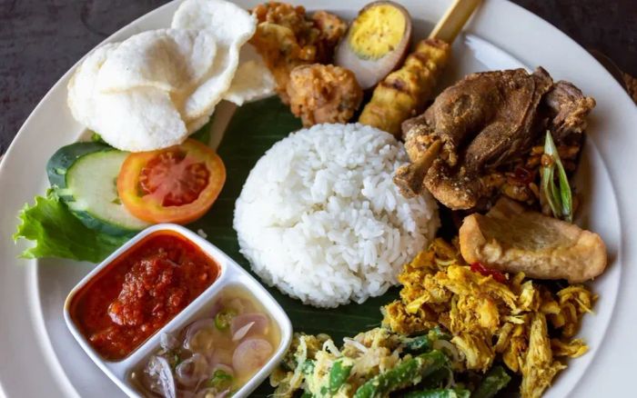Currently, there are three most popular types of Nasi Campur Bali: Nasi Campur Babi (pork), Nasi Campur Ayam (chicken), and Nasi Campur Pedas (spicy). To experience the authentic flavors of Bali, you should try the Nasi Campur Babi Guling version, one of the culinary icons of Bali.