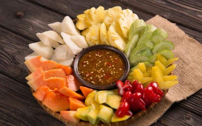 In addition to common fruits like pineapple, guava, cassava, and mango, Rujak Buleleng may also include sweet potatoes and cucumbers. The combination of fresh fruits in Rujak Buleleng creates an exciting treat for the taste buds.