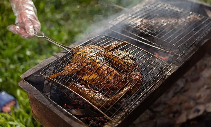 Grilled stream fish is a traditional dish of the Thai ethnic group. The fish, once caught, is cleaned and marinated with spices. These spices are typically ingredients found in the mountains and forests, such as: mắc khén, wild herbs, chili, lemongrass, and salt. The fish’s body is then scored with a knife and rubbed with the spice mix for a few minutes. Afterward, the fish is wrapped with herbs, secured with bamboo sticks, and roasted over hot charcoal until it turns golden and releases a fragrant aroma, indicating it's cooked.