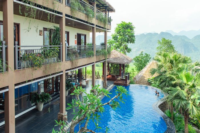 Built in the traditional Thai stilt-house style, Pù Luông Jungle Lodge offers visitors a range of exciting activities, such as trekking through pristine natural trails, cycling, and thrilling rafting adventures on the Ma River. Guests can relax by the outdoor pool, enjoy the rich flavors of local mountain cuisine, and take part in unique cultural activities of the Thai people.