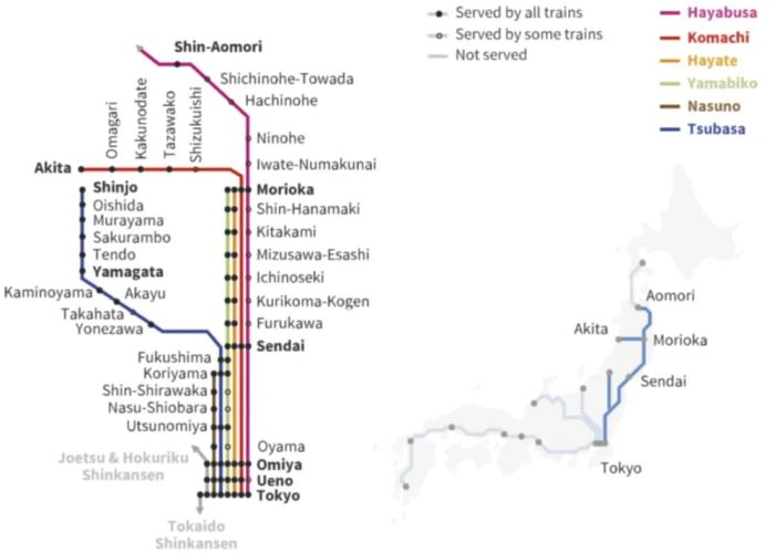 Major Stations on the Tohoku Shinkansen Line