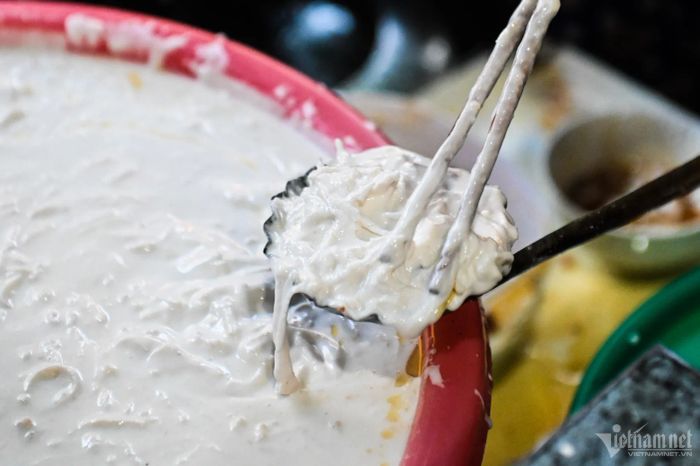 The ingredients for making this dish are quite simple. The dough is made from a mixture of glutinous rice flour and regular rice flour. It is left to ferment for 3-4 hours until it softens, then ground into flour, mixed with shredded taro and ground soybeans. This gives the cake a rich flavor without being overly greasy.