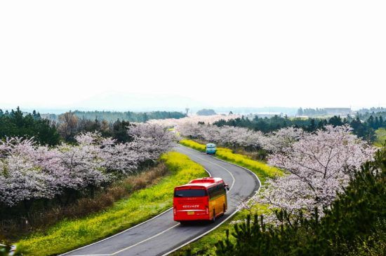 With dozens of hectares of golden canola flowers stretching across rolling valleys and framed by black volcanic rocks, Jeju’s spring beauty is further enhanced, filling the island with vibrant life. The tiny, delicate yellow petals form dense clusters on the branches, emitting a gentle fragrance as bees and butterflies flutter around.
