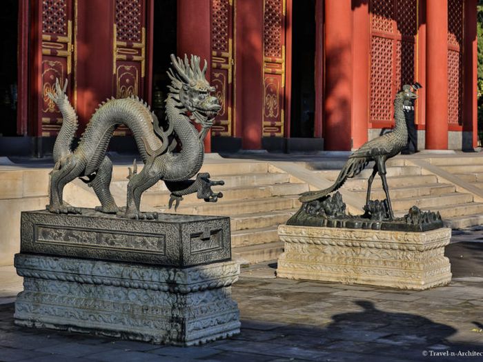 Inside Di Hòa Viên, there are other famous landmarks for tourists in China to visit. Notably, the Donggong Gate in the east is where the emperors once held court and rested. To display the emperor's power, the gate is adorned with nine dragon carvings around the main entrance, with two solemn lion statues standing on each side.