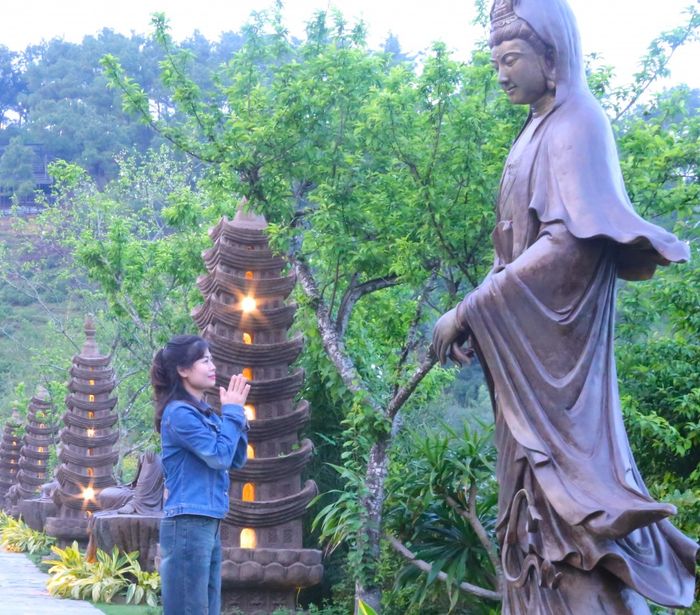 Nestled within a serene green forest in Liêm Sơn commune, Thanh Liêm district, Hà Nam, Địa Tạng Phi Lai Tự stands as a peaceful spiritual destination with its distinctive architecture.