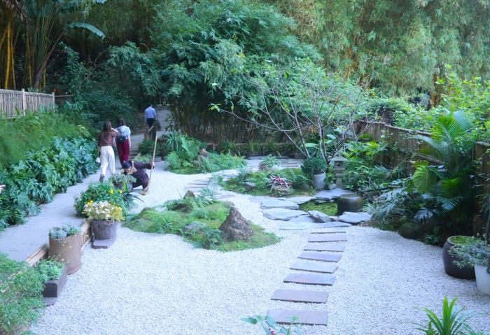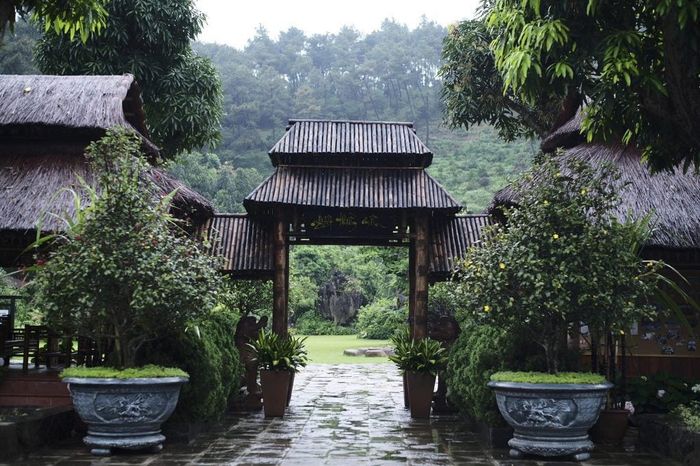 In front of the ancestral hall, 12 circles drawn on a gravel base symbolize the 12 causes of human existence. The white gravel represents meditation. The statue of Đức Địa Tạng exudes benevolence and is placed within a harmonious architectural setting. To the right of the main hall is the ancestral house, honoring 42 generations of abbots. Additionally, there is a small shrine dedicated to Quan Thế Âm Bodhisattva, Đức Ông, and Đức Thánh Hiền, along with living quarters for monks and devotees.