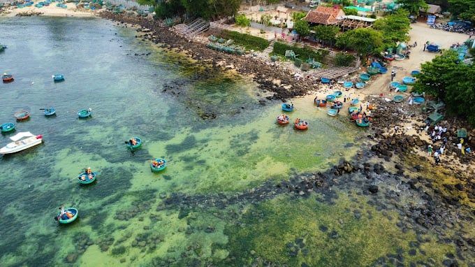 Located in Vũng Rô Bay, straddling the border between Khánh Hòa and Phú Yên provinces, Hòn Nưa is a perfect retreat for those seeking tranquility. Situated about 35 km south of Tuy Hòa city, the island is known for its emerald-green waters, so clear that you can see the seabed on sunny days. The island also features massive cliffs with intricate, cross-hatched surfaces.
