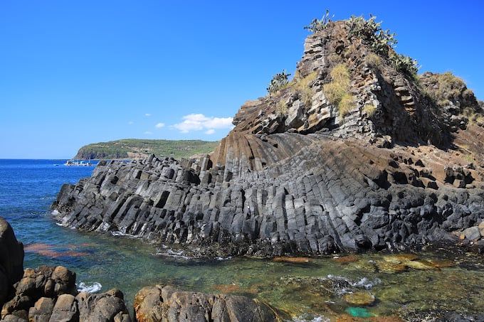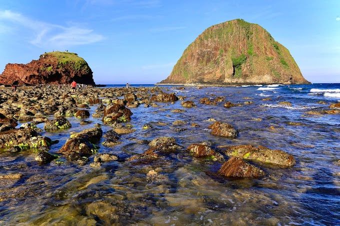 The Hòn Yến scenic complex is a nationally recognized landscape, featuring Hòn Yến, Hòn Đụn, Bàn Than, Gành Yến, Hòn Choi, and Vũng Choi. The standout attraction is Hòn Yến, located just a few hundred meters from the shore. Hòn Yến and Hòn Đụn sit side by side, creating a picturesque seascape. The cliffs of Hòn Yến showcase fascinating layered formations, forming a majestic natural canvas. The island boasts basalt columns up to 70 meters tall, with hexagonal shapes in reddish-brown hues, created by volcanic activity millions of years ago.