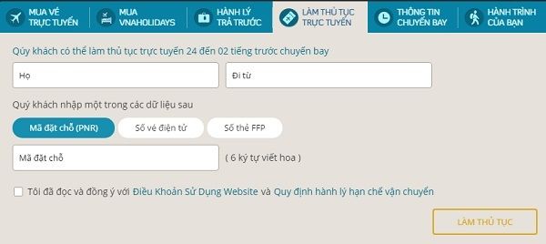 The online check-in process with Vietnam Airlines