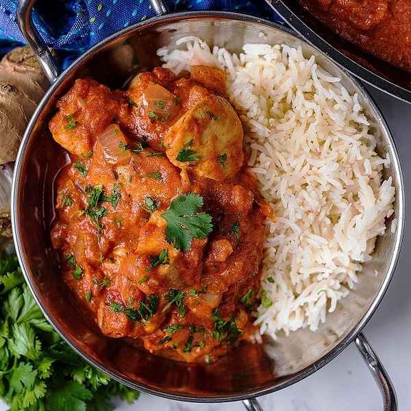 This dish is one of the oldest and most popular in India, enjoyed not only within the country but also across neighboring nations. The name may seem simple, but its preparation is quite intricate. The chicken is marinated in a mixture of lemon juice, dahi yogurt, Kashmir red chili, salt, garam masala, and ginger-garlic powder for several hours. It is then grilled, roasted, pan-fried, or baked in a traditional clay tandoor oven. Finally, the chicken is smothered in a special curry sauce made with tomatoes and onions, cooked until thick and concentrated, and seasoned with spices like cloves, cinnamon, cumin, pepper, garam masala, fenugreek, and paprika for color.