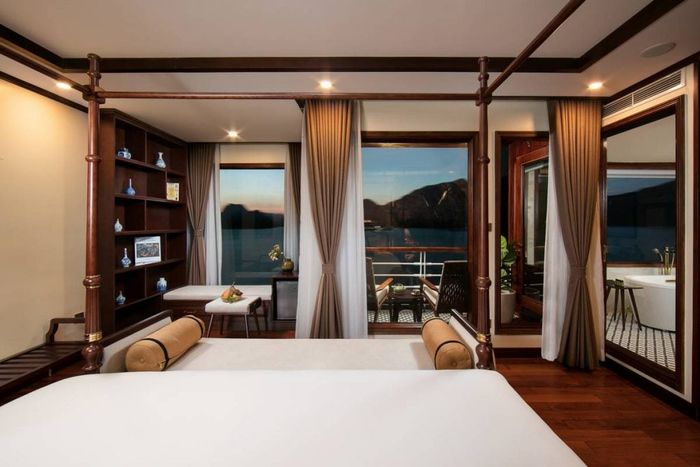Heritage Bình Chuẩn Cruise was designed inspired by the heritage ships of Vietnam's maritime king, Bạch Thái Bưởi. With a 5-deck structure that includes 20 luxurious rooms and a capacity of up to 60 guests, it is a masterpiece of Northern Vietnamese elegance, blending luxury, timeless nostalgia, and the refined style of 1930s Indochina. This is what visitors will experience upon setting foot here.