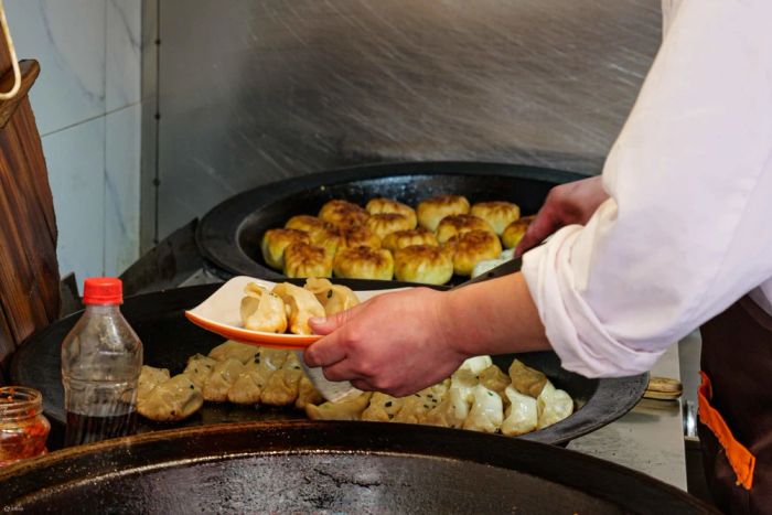 Steamed or fried dumplings and bao buns are a must-try. A serving of dumplings filled with meat, vegetables, or seafood at street food stalls costs as little as 10 - 30 CNY (35,000 VNĐ - 100,000 VNĐ), offering a delicious and budget-friendly culinary experience.
