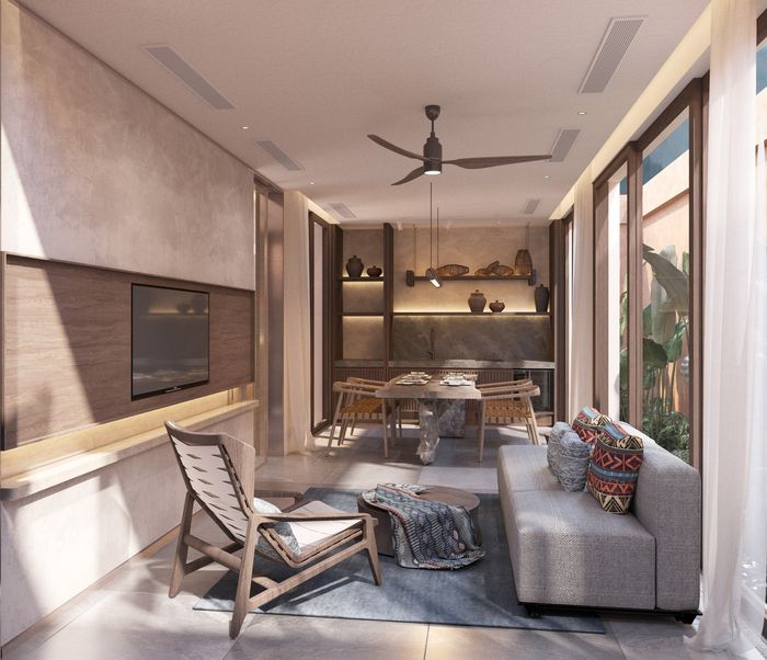 The rooms at Mandala Retreats are designed with a delicate touch, blending seamlessly with nature through open spaces that make the most of the stunning natural beauty. The hotel rooms have a modern style, yet retain a rustic and cozy atmosphere. Each room offers a view of the lush green valley or the infinity pool, providing a peaceful and relaxing vibe.