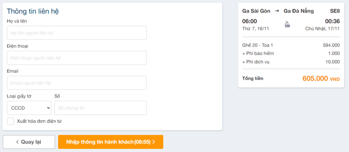 When purchasing tickets in person at ticket counters or agencies, passengers must provide similar personal details, including their full name and photo ID number. For children’s tickets, the buyer must provide the child’s information and details of the accompanying adult.