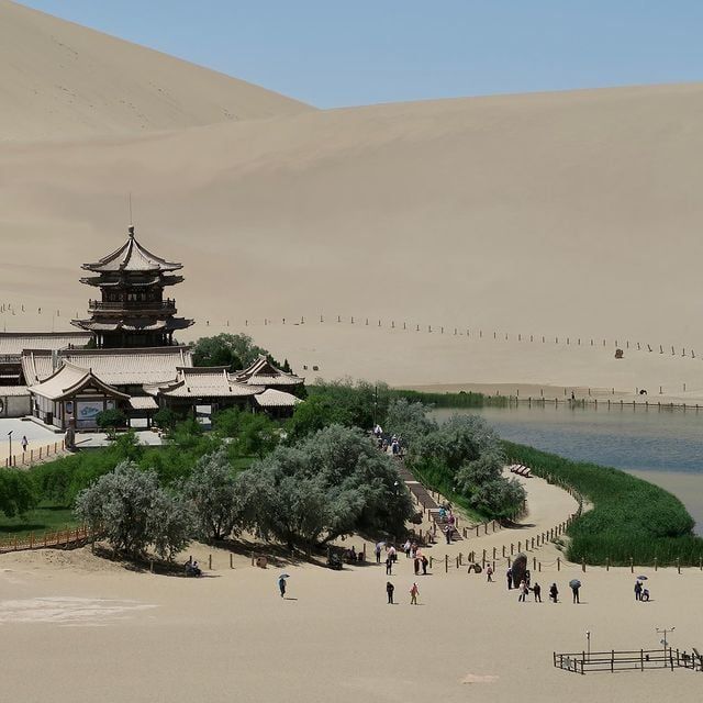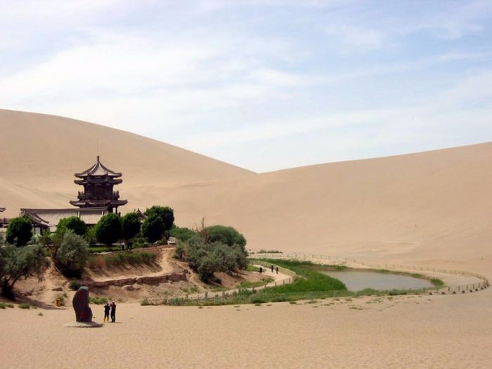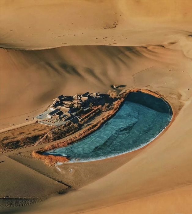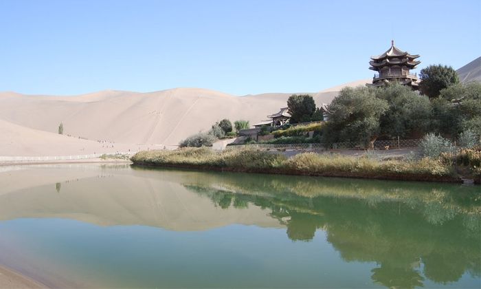 Located 5km south of Dunhuang City in Gansu Province, Nguyệt Nha Tuyền Lake sits amidst the Gobi Desert. It served as a resting spot for merchants on the Silk Road. The freshwater lake spans approximately 218m in length and 54m in width. Situated in a low-lying sandy area, it experiences minimal evaporation and wind impact, allowing it to endure for over 2000 years without drying up.