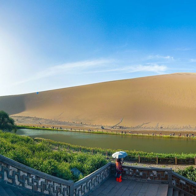 Nguyệt Nha Tuyền Lake is often likened to a “miracle.” Amidst the arid desert lies a lush, picturesque oasis. Its waters shift colors with the seasons, ranging from emerald green to shimmering blue. Legend has it that the lake was created by deities. Human greed led to the burial of civilization under desert sands, but only pure-hearted children could pass. The gods then formed this lake as a sanctuary for the faithful in the desert’s heart.
