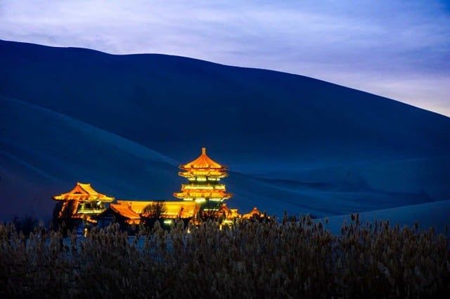 Additionally, there are tales here involving the “sa pha lang” wolves and the Princess of Huigu. These stories explain why locals in Dunhuang and Nguyệt Nha often hear wolf howls. Today, the lake has been developed into a renowned tourist destination. By day, the sunlight is intense, while at night, the shimmering lights create a magical atmosphere.