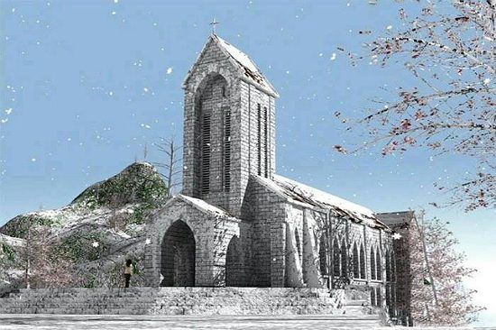 Heavy snowfall at Sapa Stone Church - Illustrated image