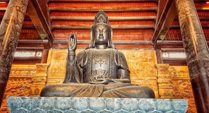 Pháp Chủ Shrine venerates Shakyamuni Buddha and is considered a significant spiritual center. Its standout feature is a massive 10-meter-tall, 200-ton black bronze statue of Shakyamuni. The interior is adorned with reliefs illustrating the life and teachings of the Buddha.