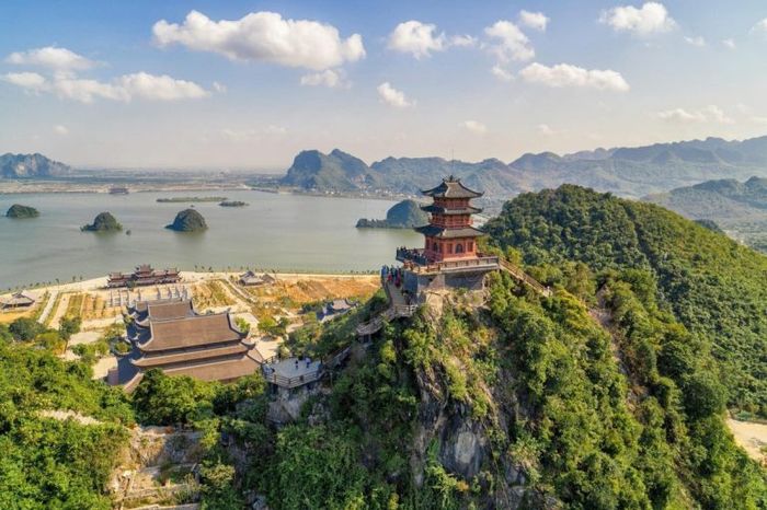 Tam Chúc National Tourist Area, located in Ba Sao town and Khả Phong commune, Kim Bảng district, Hà Nam province, spans over 5,000 hectares. Known as the “Inland Ha Long Bay,” Tam Chúc boasts majestic and poetic beauty. At its heart lies the Tam Chúc Temple, surrounded by impressive structures. The vast Tam Chúc Lake, dotted with six small mountains, creates a breathtaking landscape. Tam Chúc is not only a scenic destination but also a sacred pilgrimage site. It hosted the United Nations Vesak Celebration in 2019.