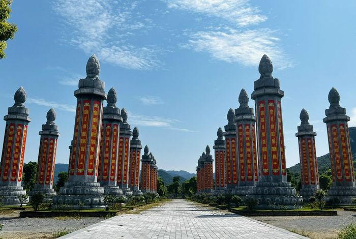 The Stone Sutra Garden features 32 monolithic green stone pillars engraved with Buddhist scriptures. Arranged solemnly in a vast space, the pillars harmonize with the natural surroundings. Walking through the garden, visitors can experience a sense of peace and tranquility in this sacred space.