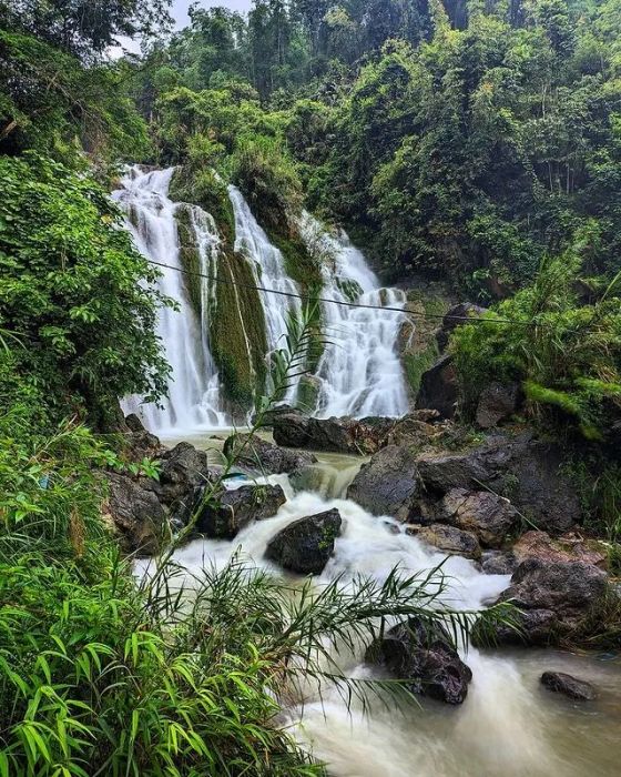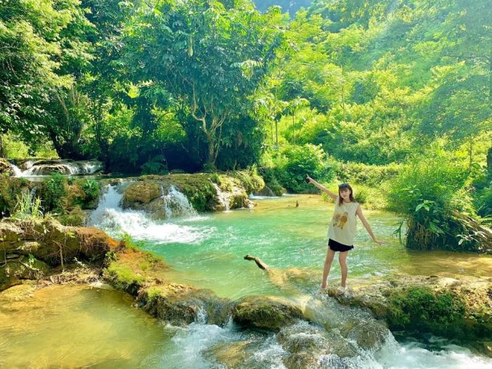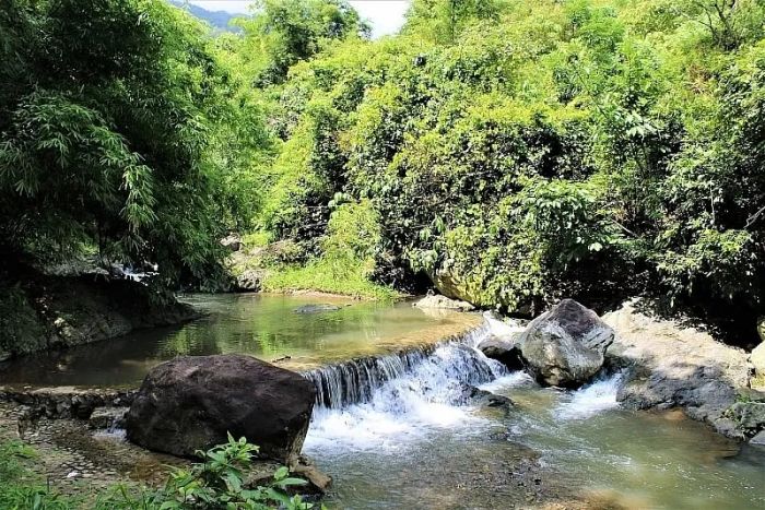 Thăng Thiên Waterfall is surrounded by dense forests rich in vegetation. The highlight of the waterfall is its cool, emerald-green waters, which captivate visitors every time they visit. The refreshing air around the stream adds to the overall sense of tranquility.