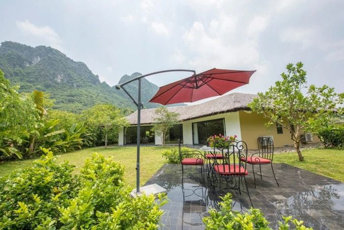 Located by the Bôi River and backed by Quếnh Mountain, Serena Kim Bôi is blessed with natural hot springs beneficial for health. The resort is built with rustic materials like thatched roofs, wooden floors, bamboo, and stone. Serena Kim Bôi offers various room types, including Garden Villas with private gardens perfect for family BBQs.