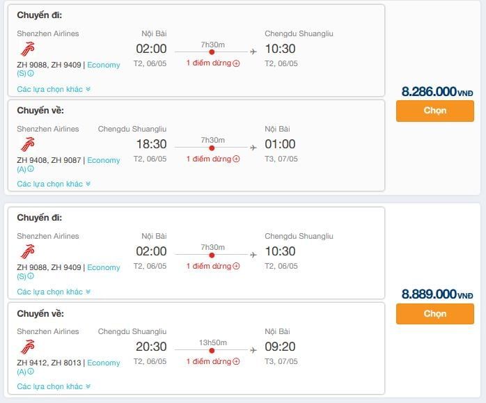 The most common and convenient mode of travel from Vietnam to Sichuan is by airplane. Airlines such as Shenzhen Airlines, China Southern Airlines, China Eastern, Air China Limited offer flights departing from Ho Chi Minh City, Hanoi, and arriving at Chengdu Shuangliu International Airport in Chengdu, Sichuan. Check the ticket prices HERE.