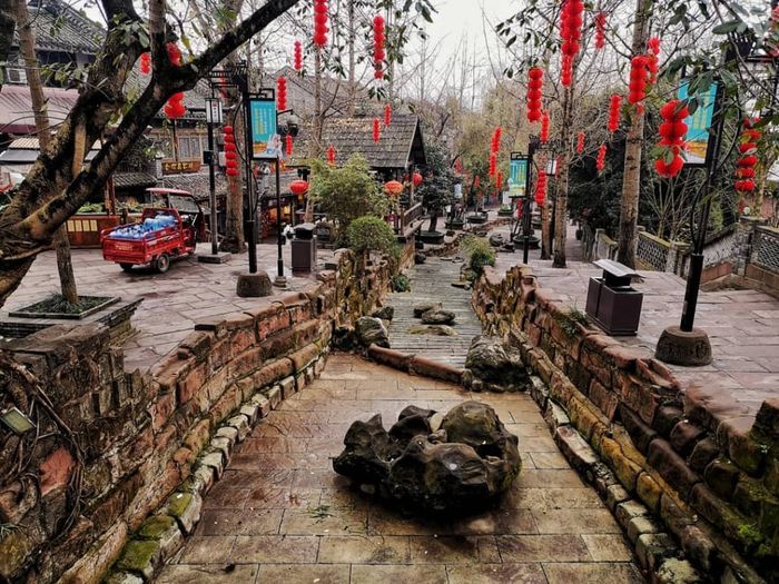 Spanning about 550 meters, Cam Ly Ancient Town is part of the Wu Hou Temple, with architecture dating back to the Qing Dynasty. This area is considered a sacred site in the famous novel, Romance of the Three Kingdoms. Strolling through the ancient streets, you can immerse yourself in the cultural atmosphere and taste the region's famous spicy local dishes from Sichuan.