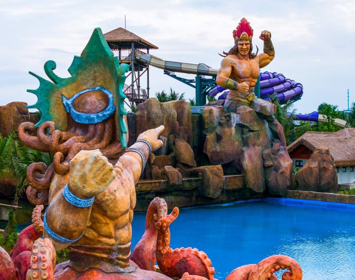 Sun World Sam Son draws inspiration from the flow of culture, connecting and sharing the legendary stories of Vietnam's ethnic groups. The landscape design is striking, incorporating local architectural motifs and materials harmoniously with international architectural styles. Visitors can enjoy a variety of water park attractions, ideal not only for thrill-seekers but also for families and children, featuring wave pools, lazy rivers, intense water slides, and more. Notably, Sun Son Water Park introduces the highest and first-ever water slides in Asia.