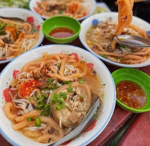Bên cạnh đó, điểm nhấn đặc biệt của món ăn này chính là phần nước lèo ngọt thanh được ninh kỹ từ xương heo tươi trong nhiều giờ liền. Khi ăn người ta sẽ cho bún vào tô, tôm tươi, thêm nước lèo, rau thơm… và thưởng thức.