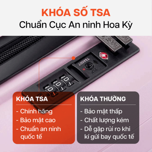 Opting for genuine rolling suitcases equipped with a combination lock or TSA-approved frame lock will provide better security for your luggage. Only the Transportation Security Administration (TSA) has the key to open your suitcase and inspect its contents in case of a security concern, without causing damage. If the suitcase does not feature a TSA-approved lock, they may have to cut or break the lock to check your belongings.