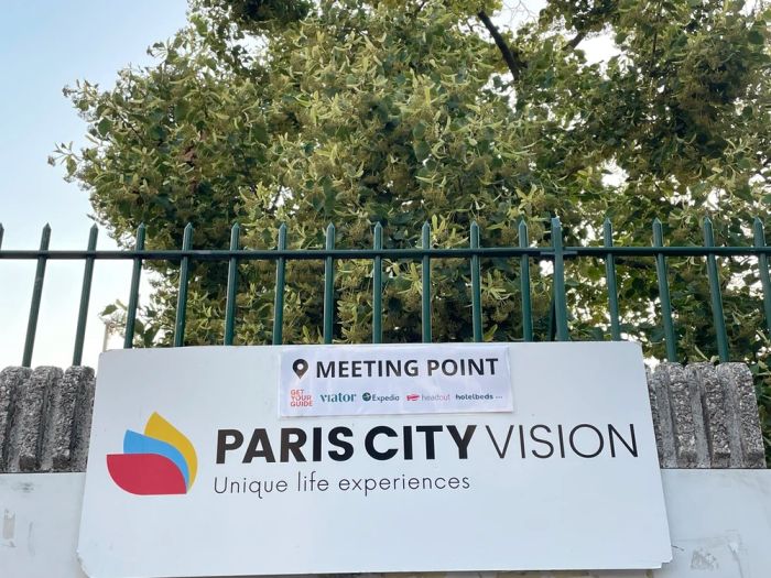 We joined the Eiffel Tower exploration tour in July 2023. Although we arrived at 9:45 PM, it was still quite bright outside due to the late sunset in Paris during summer. The meeting point was clearly stated in the email: Place de Sydney in front of Pullman Paris Tour Eiffel at 9:20 PM (20 minutes before departure). Be sure to look for the Paris City Vision representative standing in front of the sign.