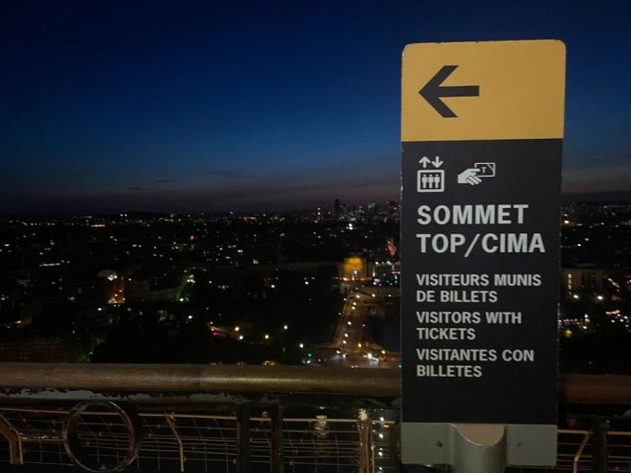 Để lên tầng trên cùng, hãy đi thang máy có nhãn "SOMMET/SUMMIT".
