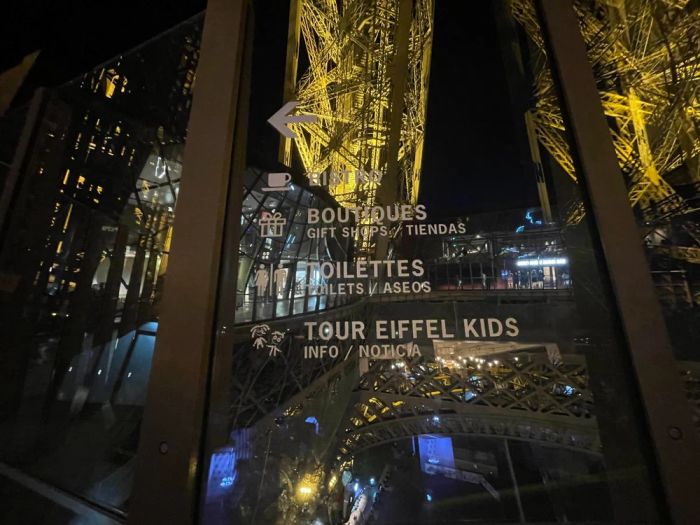 The restrooms are also located on the second floor! The second level of the Eiffel Tower also features another observation deck, divided into two interesting areas for you to explore. After enjoying the panoramic view of Paris from the outdoor section, don't forget to head down the stairs and check out the impressive indoor space.