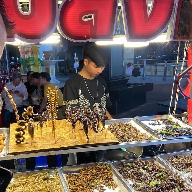 Khao San Road is a vibrant street food paradise, offering a mix of iconic Thai dishes and unique culinary experiences. Indulge in fresh shrimp pad Thai, spicy som tam salad, or aromatic moo ping grilled skewers. For the adventurous, the area is also known for its crispy fried insects.