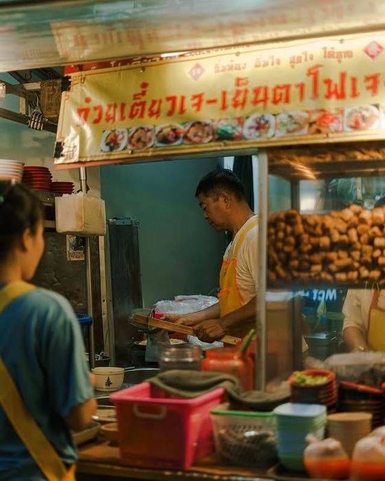 Bang Rak, known as the 'Village of Love' in Bangkok, is a famous food street. This area offers a variety of dishes, from rich green curry and spicy-sour tom yum to som tam salad and khao soi (curry noodles). Additionally, Bang Rak is home to long-standing family-run restaurants where visitors can savor traditional recipes. Beyond Thai cuisine, you’ll also find European, Chinese, and Indian dishes.