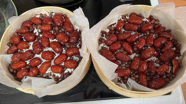 Sticky rice cake with dates is a popular breakfast dish among locals in Xinjiang. Made from glutinous rice, dates, and red beans, the cake is traditionally cooked in an ancient clay pot called a 'zeng.' This results in a sweet, fragrant cake with a fruity aroma, the chewiness of sticky rice, and the nutty sweetness of red beans. While it may appear overly sweet at first glance, its unique flavor is surprisingly light and enjoyable.