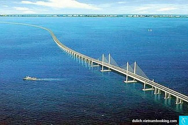 Thi Nai Bridge, the longest sea-crossing bridge in Vietnam, stretches nearly 7 kilometers, connecting Quy Nhon city with Phuong Mai Peninsula. Today, it is a popular scenic spot for both domestic and international tourists visiting Quy Nhon. Additionally, passing the bridge leads to Thi Nai Lagoon, another breathtaking destination known for its serene landscape.