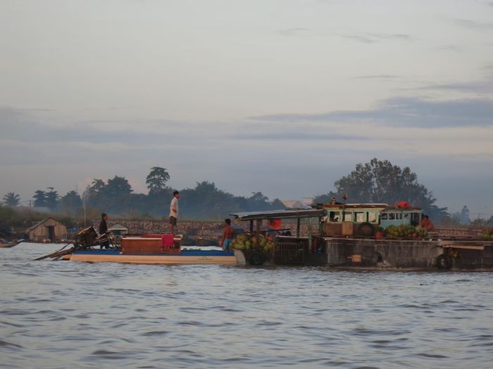 When the market is in full swing, boats selling drinks and breakfast items cruise around to serve customers. Drinks and food at the market cost between 15,000 and 25,000 VND. The floating market also attracts tourists who enjoy breakfast on the boats and shop for goods, especially fresh Western region fruits like pomelos, mangoes, plums, and coconuts. Boat rides to the market cost 100,000 VND per person.