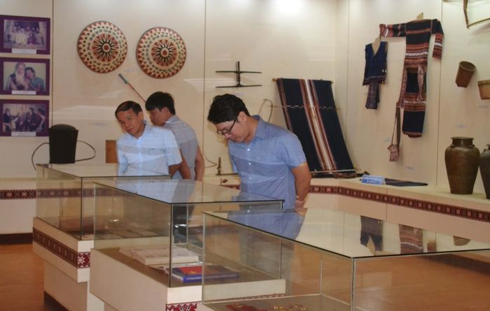 At the Gia Lai Museum, visitors are introduced to the region's history and the people of Gia Lai. The museum features 6 rooms and displays nearly 7,000 original artifacts. It is also a cultural architectural site, home to various historical and cultural heritage. Among the exhibits, there are many valuable items related to traditional culture, such as the Gong collection of the Jrai and Bahnar ethnic groups, rare ancient pottery, the An Thanh bronze drum, and Cham Pa stone reliefs.