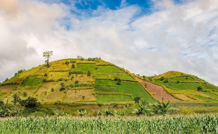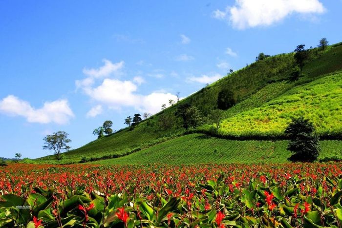 Chư Đăng Ya, located in Chư Păh district, is about 30km from Pleiku city. This is a famous tourist spot in Gia Lai that attracts many visitors. Chư Đăng Ya is an ancient dormant volcano, which has been inactive for millions of years. The crater is funnel-shaped, standing about 500m above sea level. It is hidden among the lush forests of the Central Highlands. Throughout the year, Chư Đăng Ya changes its colors. During the dry season, the volcano is covered in a vibrant yellow hue from the thousands of wild sunflowers. In the rainy season, Chư Đăng Ya is adorned with the rich red of wild ginger flowers.