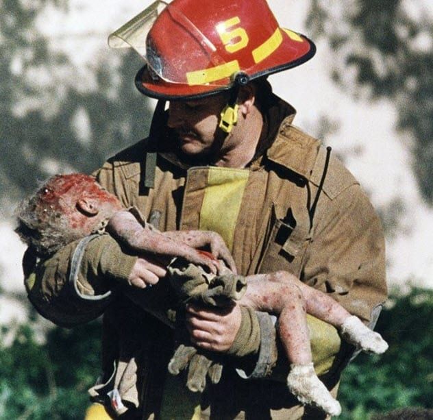 Captured on April 19, 1995, the image depicts a firefighter cradling the body of a critically injured infant. Porter, not a professional photojournalist, happened to have a camera with him at the time.