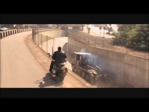 The scene unfolds like this: (1) a dispute, (2) your typical chase scene with a few twists and turns, (3) a completely outlandish wall jump triggered by shooting wheel spokes, (4) driving over cars like they’re small animals being hurried to a council meeting with a wise owl, and (5) turning the bike into a massive onyx vibrator and squeezing through the tiniest gap ever captured on film, all while somehow not even staying on the bike for the entire scene. That was exhausting. It’s the most unrealistic motorcycle sequence in cinema, one that will leave any motorhead's head spinning.
